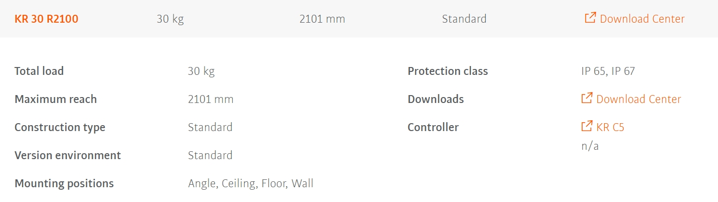 KUKA KR30 R2100 Industrial Robot for Welding & Material Handling